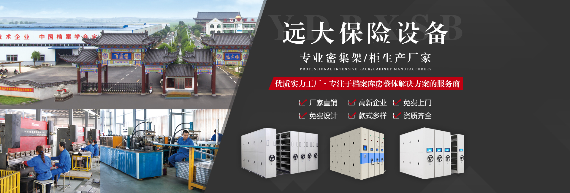 江西遠(yuǎn)大保險(xiǎn)設(shè)備實(shí)業(yè)集團(tuán)有限公司廣州白云分公司是一家集研發(fā),生產(chǎn)保險(xiǎn)設(shè)備、檔案圖書(shū)裝具的現(xiàn)代化專(zhuān)業(yè)企業(yè)。集團(tuán)公司占地面積6.5萬(wàn)余平方米,注冊(cè)資金13380萬(wàn)元,技術(shù)力量 雄厚,設(shè)備優(yōu),注重新產(chǎn)品研發(fā)創(chuàng)新,采用國(guó)內(nèi)先進(jìn)數(shù)控設(shè)備,主要產(chǎn)品有密集架、書(shū)架、文件柜、保險(xiǎn)柜、防爆柜、金庫(kù)門(mén)、活動(dòng)庫(kù)房、藥品柜等,十多個(gè)系列,一百多個(gè)品種。所有產(chǎn)品表面全部經(jīng)磷化處理,超水平靜電噴塑,具有美觀(guān)大方,高雅尊貴,價(jià)格合理,交貨 準(zhǔn)時(shí)。在全國(guó)同行市場(chǎng)贏(yíng)得良好的......